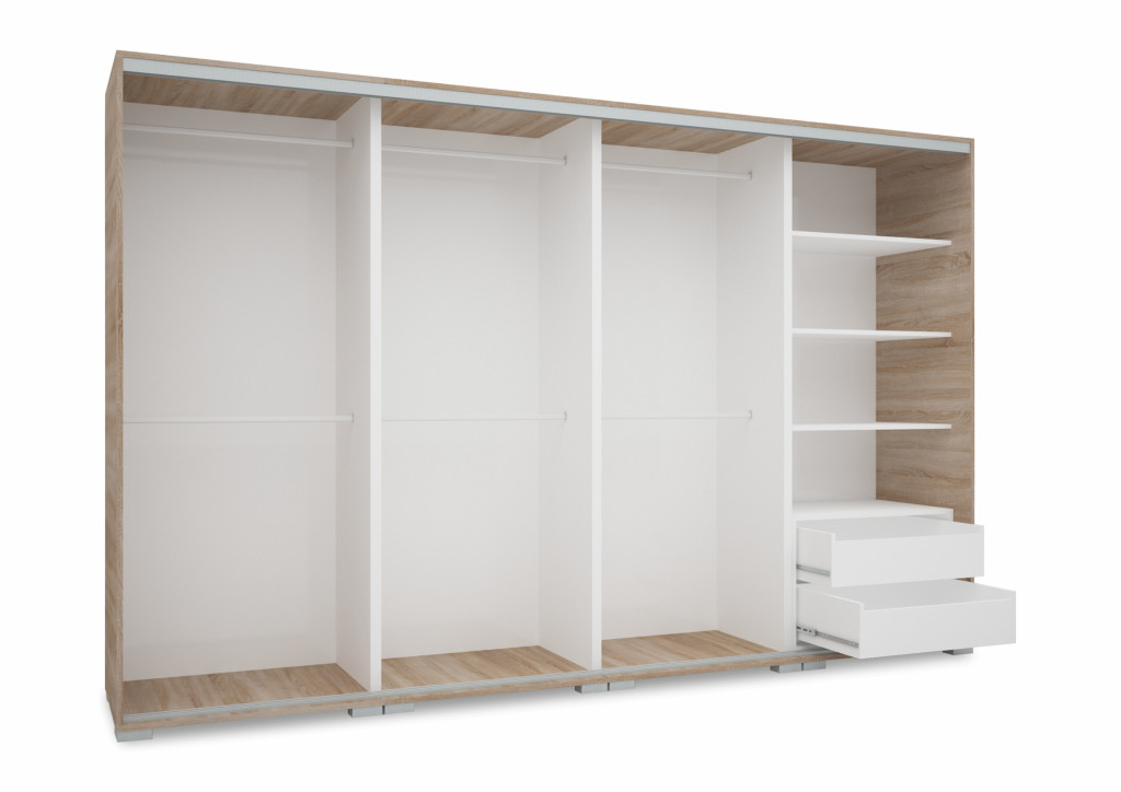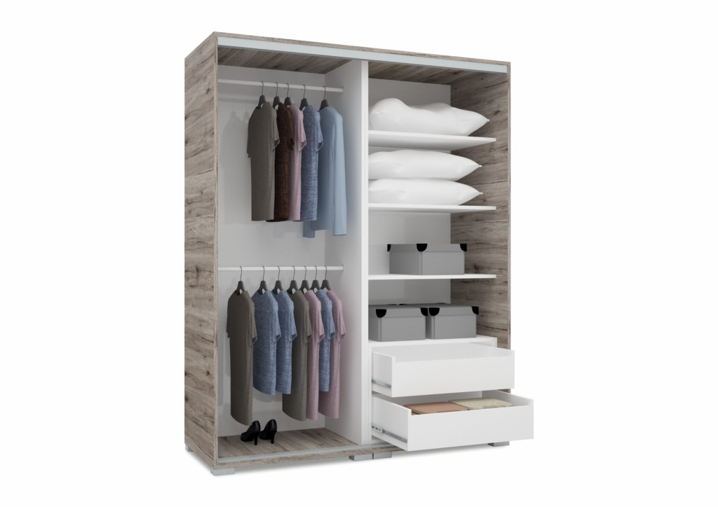 A Borneo gardrób modern megjelenésével és helytakarékos tolóajtóival eleganciát és funkcionalitást visz otthonodba. Tágas belső kialakításának köszönhetően minden ruhád és kiegészítőd rendszerezetten elfér benne, miközben a különböző méretváltozatok lehetővé teszik, hogy igényeidhez igazítsd.