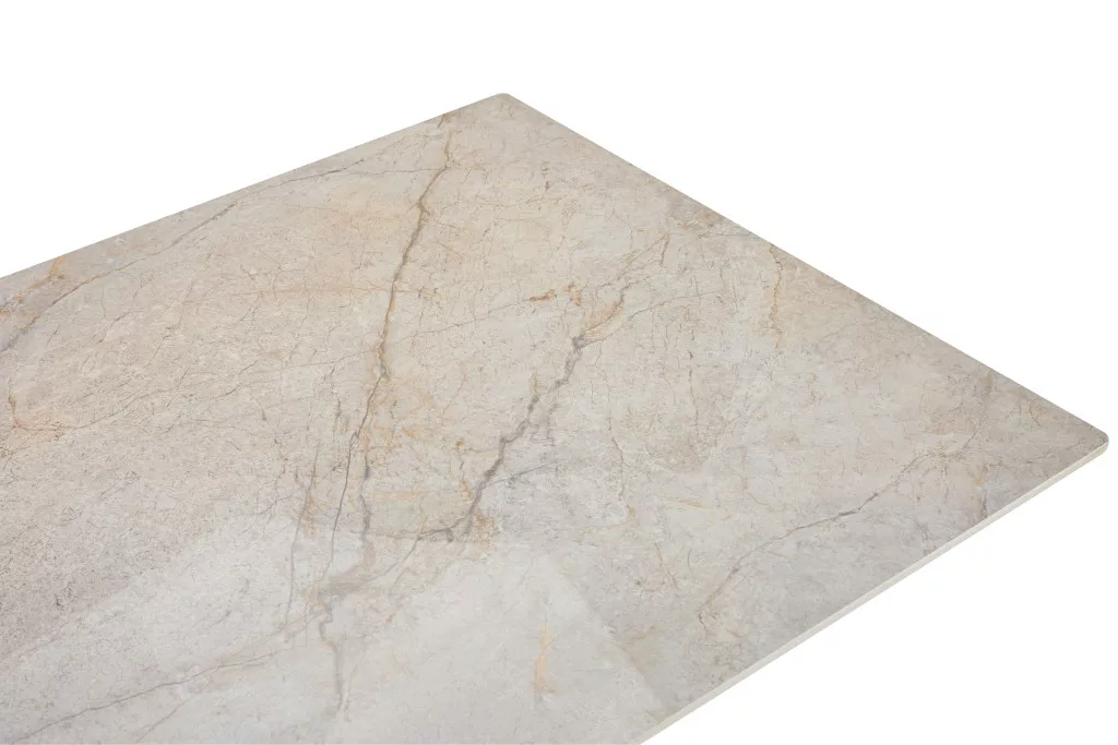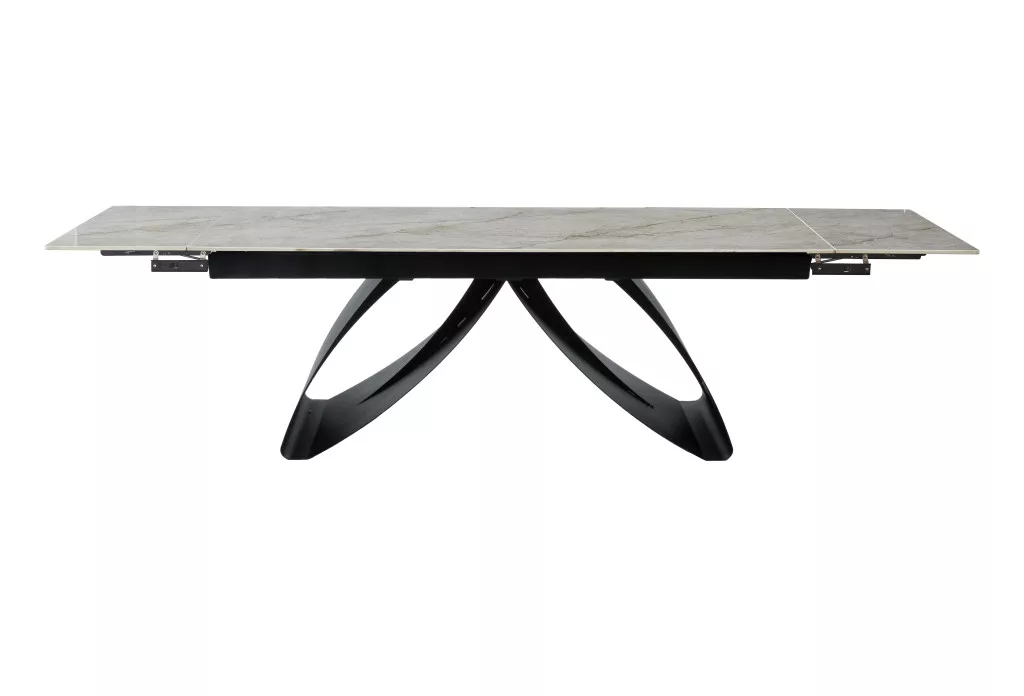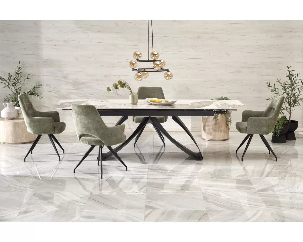 A CARRARA bővíthető étkezőasztal a tökéletes választás azok számára, akik a stílust és a funkcionalitást keresik egy bútordarabban. Ez az asztal nemcsak elegáns megjelenést biztosít, hanem a bővíthető funkciójával rugalmas megoldást kínál minden alkalomra.  Az asztal lábai és alapja porszórt acélból készültek, amelyek tartósságot és stabilitást garantálnak. Magasfényű, szinterezett kő asztallapja modern megjelenést és kiváló ellenálló képességet biztosít. Az asztal szélessége könnyedén állítható 180 cm-ről 260 cm-re, így ideális választás mindennapi használatra és nagyobb összejövetelekre egyaránt.