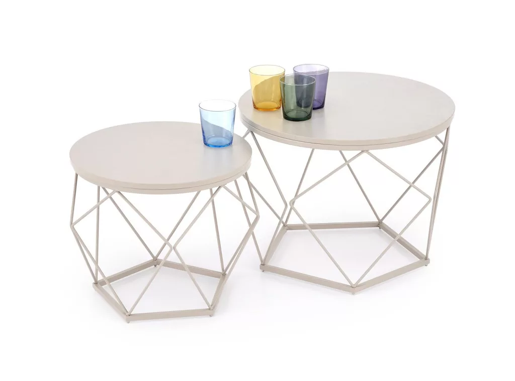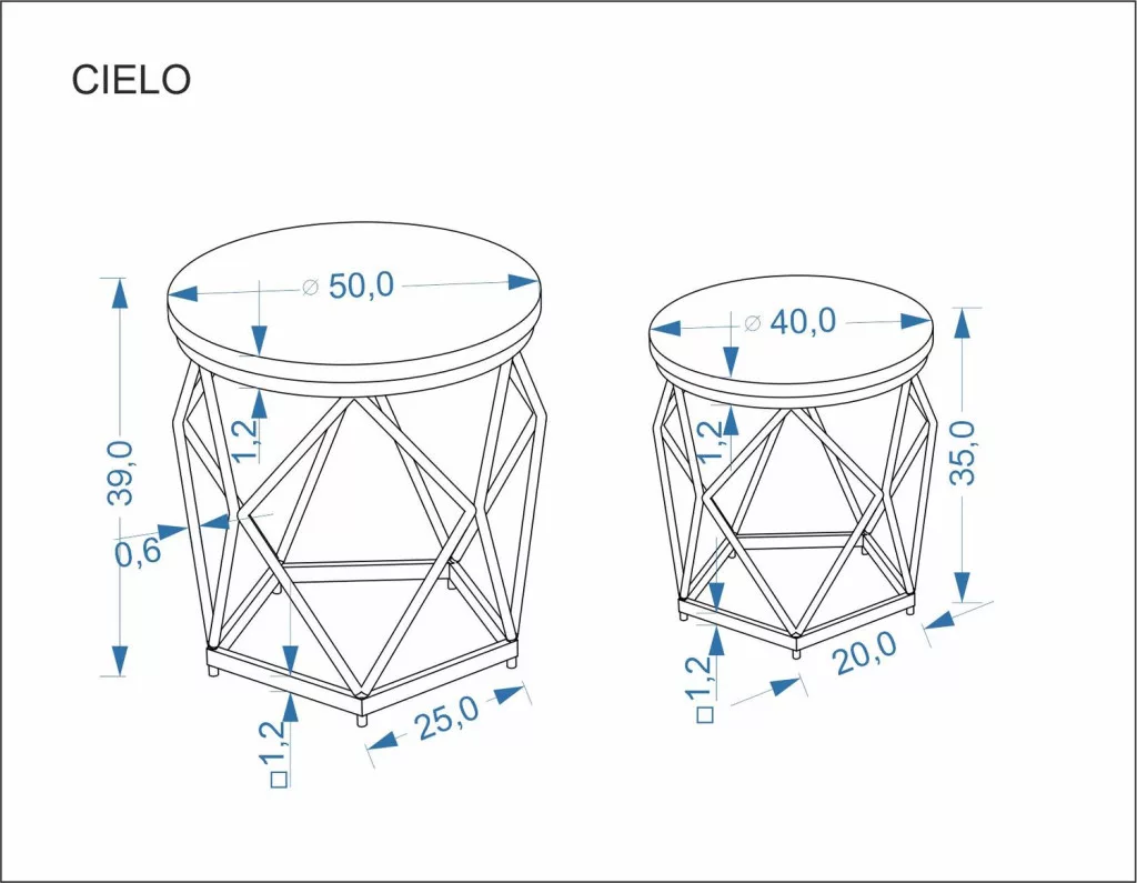 Az Cielo dohányzóasztal szett ideális választás azoknak, akik a modern minimalista és indusztriális design elemeket kedvelik otthonukban. A két különböző méretű, kör alakú asztal kombinációja praktikus és esztétikus megoldást kínál nappaliba vagy más társalgó helyiségekbe.