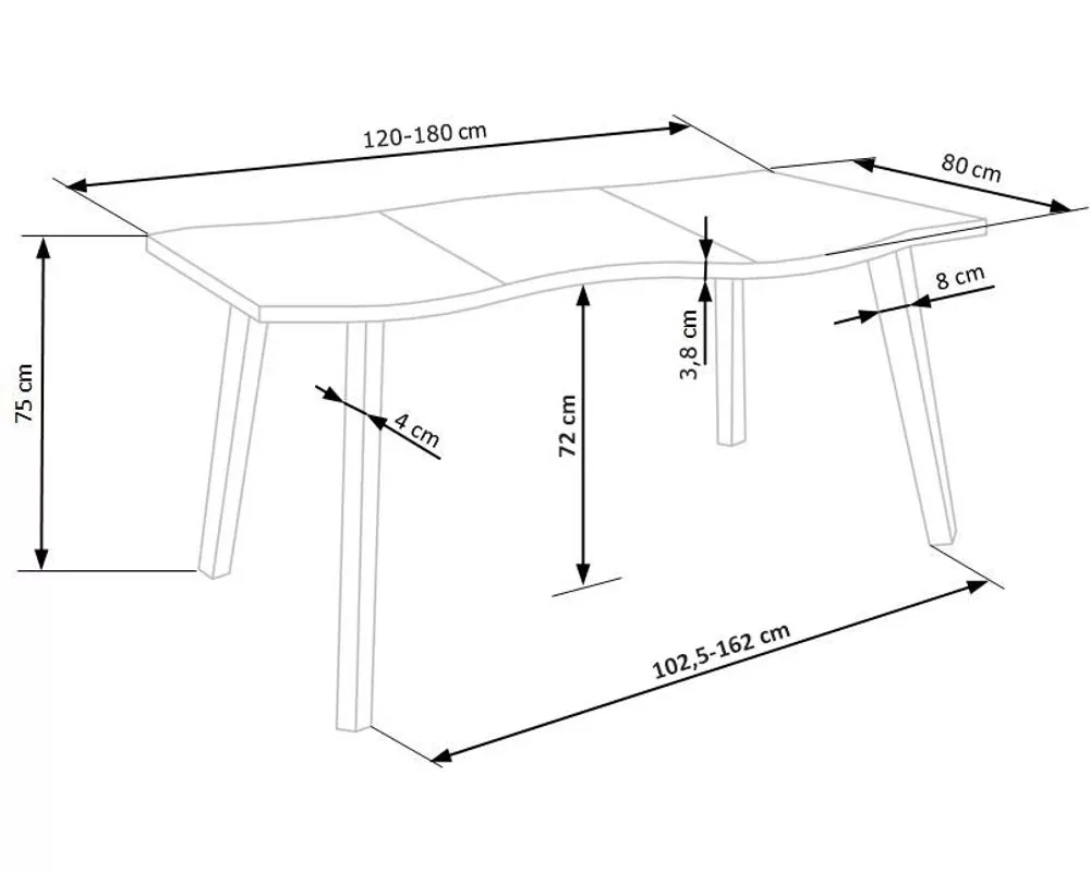 Ez az asztal bővíthető, így kisebb családi vacsorákhoz és nagyobb vendégségekhez egyaránt tökéletes. Az 120 cm-es alapméret kényelmes helyet biztosít napi használatra, míg a 180 cm-es hosszúság akár hat fő kényelmes elhelyezését is lehetővé teszi.