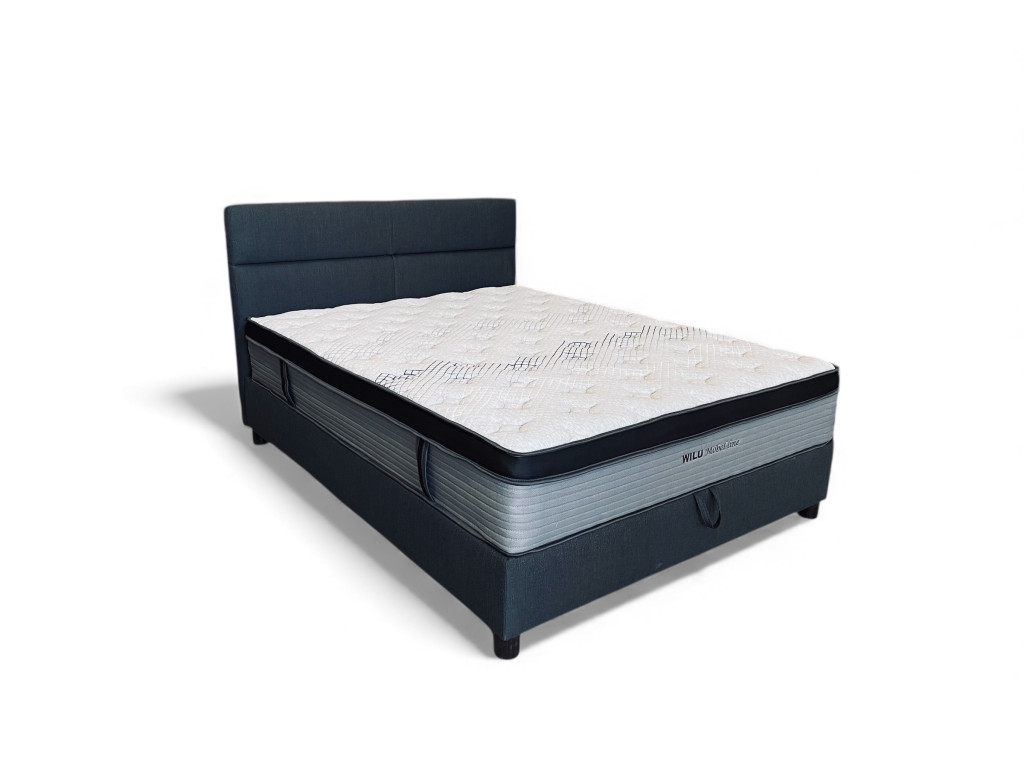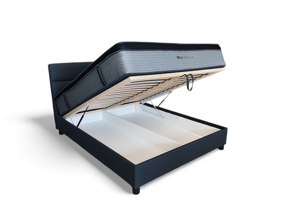 Bükkfa vázszerkezet illetve ágyrács, táskarugós matrac, gázrugós kiemelő vasalat,