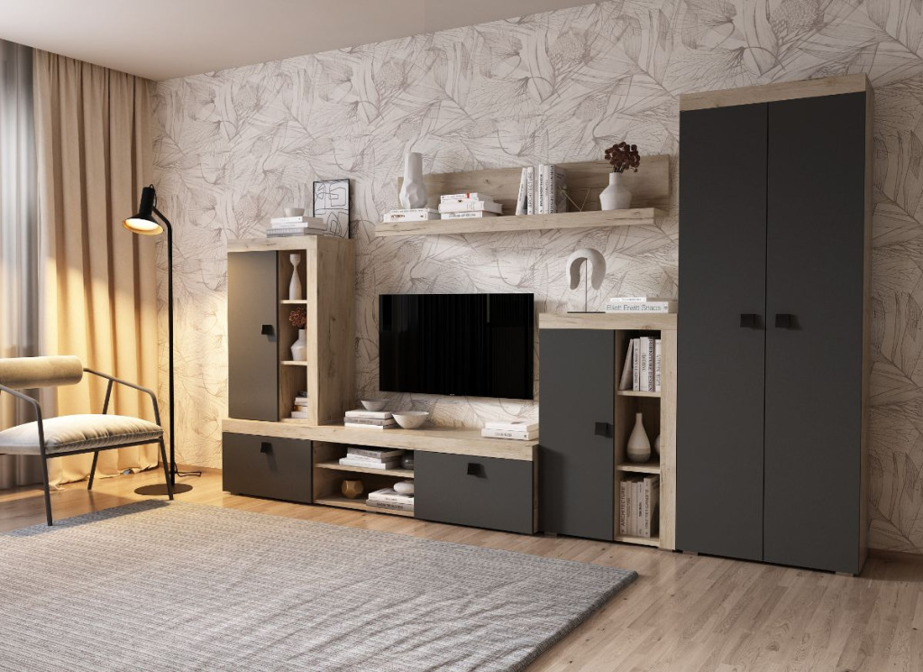 Ontario nappali bútor szett tartalmaz minden alapvető elemet, amire egy nappaliban szükség lehet. A szekrénysor a nappali fő elemeként letisztult, modern megjelenésével kellemes hangulatot teremt, miközben roppant praktikus és funkcionális elemekből áll.