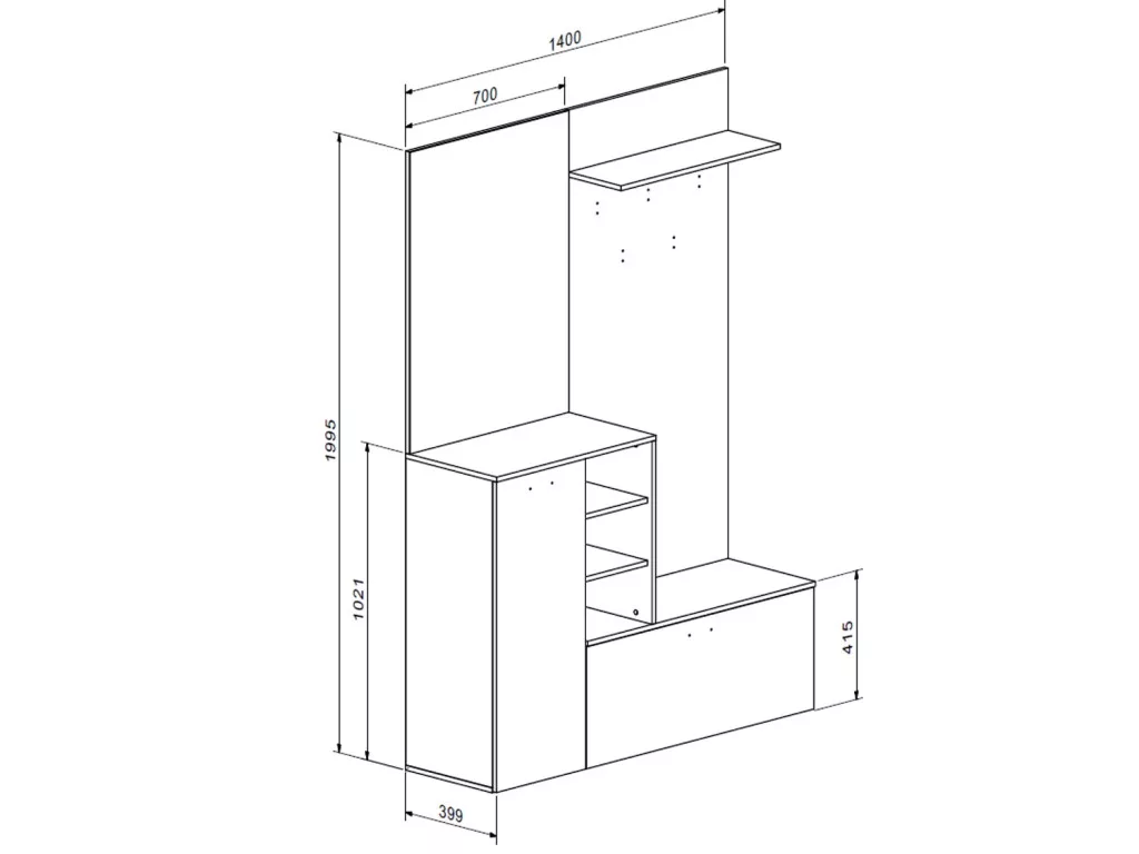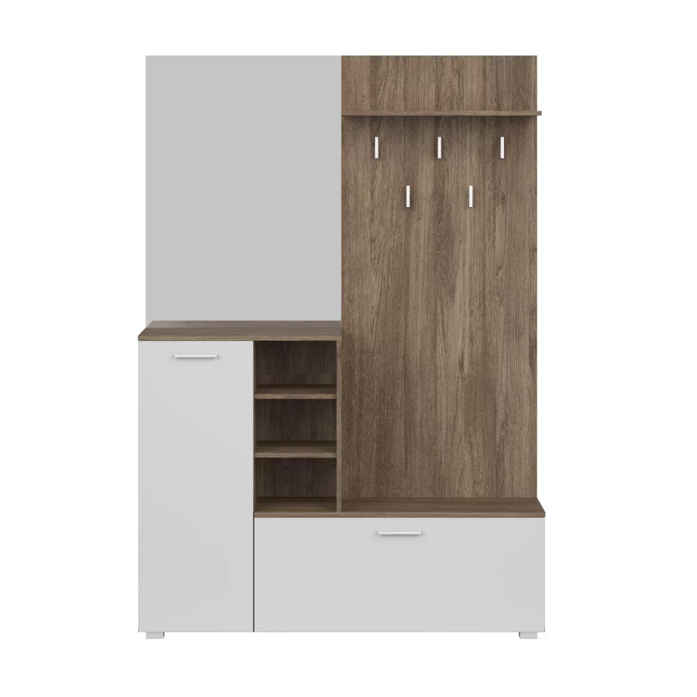 A Veto előszoba összeállítás tökéletes választás egy rendezett és stílusos előszoba berendezéséhez. A praktikus polcok, két szekrény és a tükör gondoskodnak a kényelmes tárolásról, miközben modern megjelenést kölcsönöznek a térnek. Letisztult formavilágának köszönhetően nagyszerűen illeszkedik a modern enteriőrökbe.