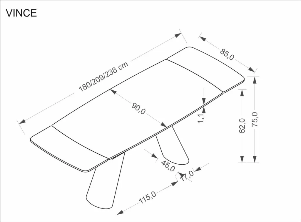 Vince bővíthető asztal 180-238 cm