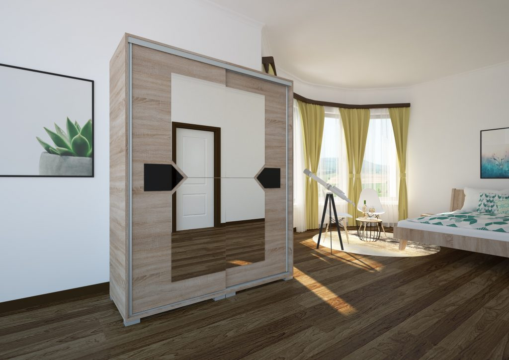 A Bravo gardrób egyediségét az ajtón látható dísz és a hozzá igazodó tükör együttesen alkotja.  A 160 cm-es méret a legtöbb hálószobába ideális. Bravo gardróbunk kapható magasfényű betéttel is. A hatféle magasfényű betét tetszőlegesen társítható bármely ajtószínhez. Egy izgalmas megjelenésű gardrób, ami variációi révén sok otthonban megállja a helyét.